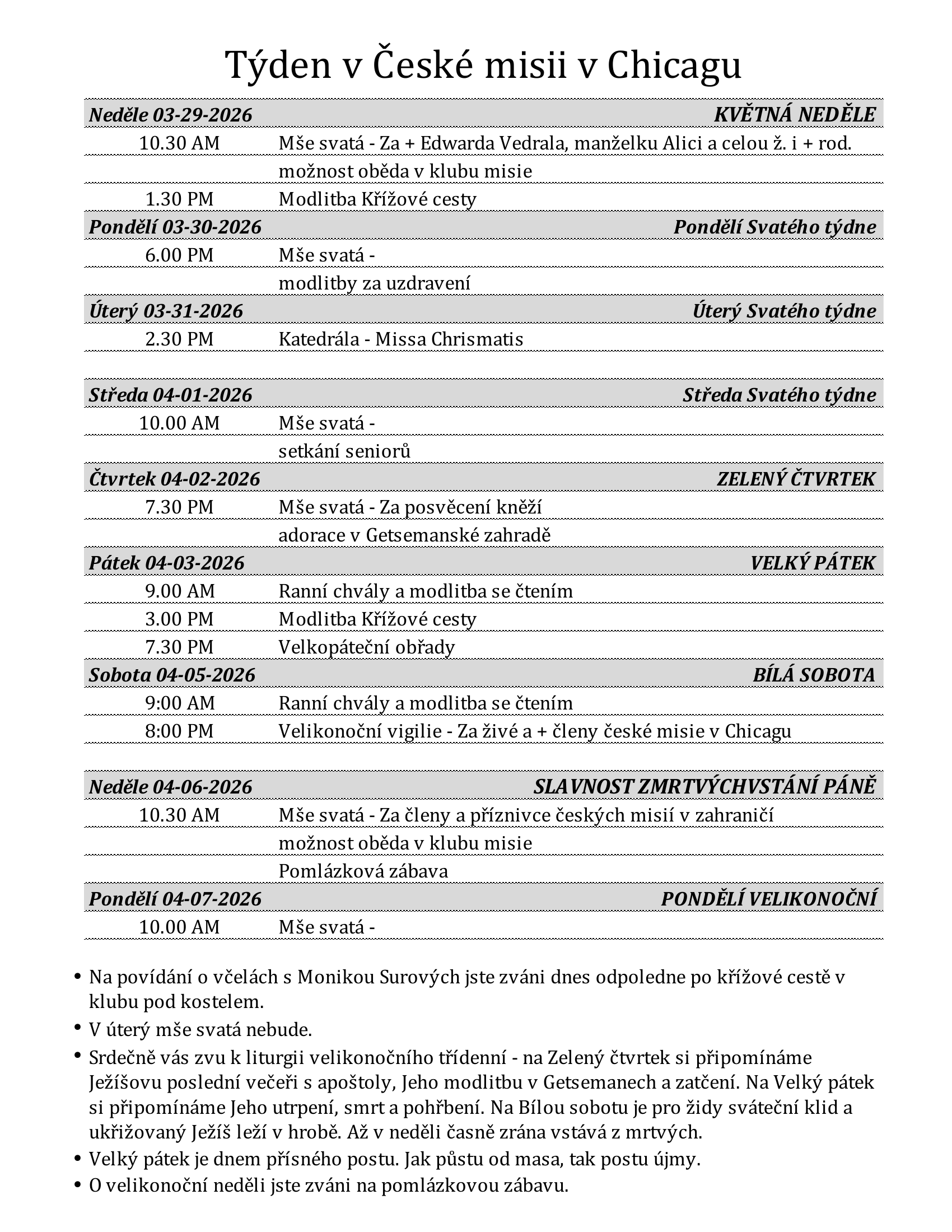 Týdenní program