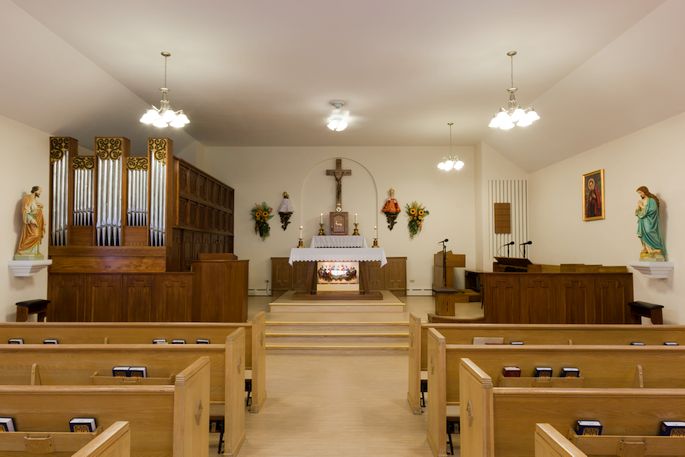 mše svatá, probíhají zde svatby, křty, pohřby a další