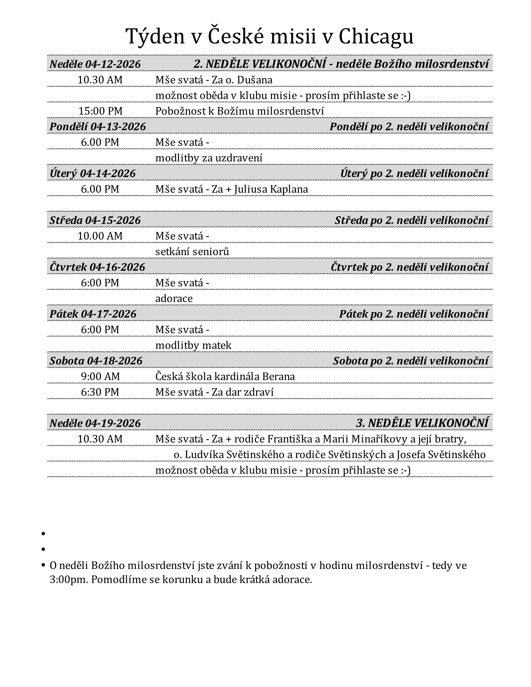 Týdenní program